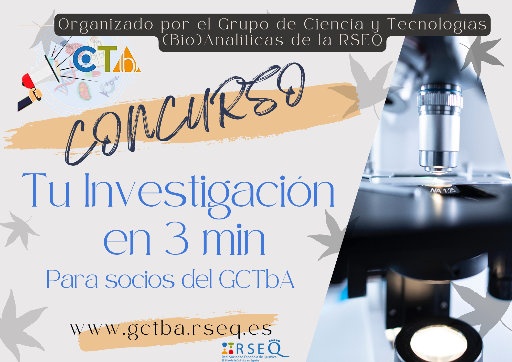 I Edición del Concurso GCTbA de Divulgación Científica «Tu investigación en 3 min» Ver imagen más grande Noticia: Concurso «Tu investigación en 3 min»Programa: Horario – Tu investigación en 3 min – 16/12/2022Resolución: 2022-12-16 Resolución Concurso GCTbA Tu investigacion en 3 min 2022 Fecha: 16/12/2022. Lugar: online.Más información:Folleto informativoGrupo Especializado de Ciencias y Tecnologías (Bio)Analíticas2025-06-19T18:01:12+02:0024 octubre 2023|Comparte esta noticia...FacebookXCorreo electrónico
